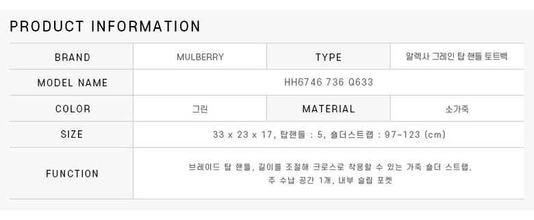 [명품] 멀버리 HH6746 736 Q633 알렉사 그레인 탑 핸들 토트백