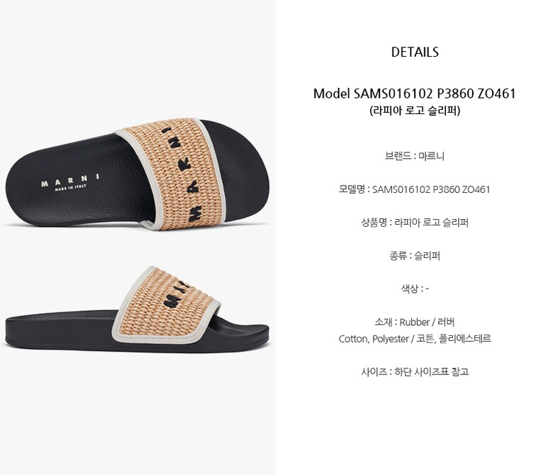 - #리본즈코리아 #SAMS016102P3860ZO461 #[명품] #마르니 #SAMS016102 #P3860 #ZO461 #라피아 #로고 #슬리퍼 #여성 #슈즈 #샌들/슬리퍼