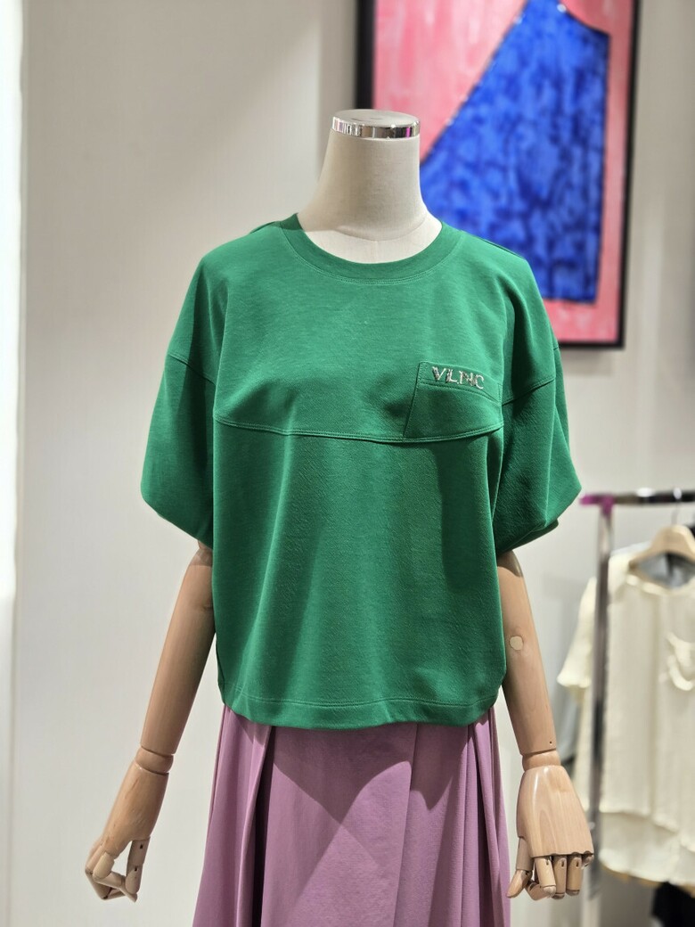 [발렌시아]로고 자수 퍼프 소매 반팔 티셔츠 254MC17