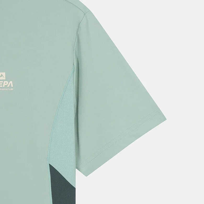 - 나일론 싱글 메쉬 소재를 열이 나는 뒷 목부분과 암홀, 옆구리 부분에 하이브리드하여, 신체의 열과 땀을 빠르게 식혀주어 쾌적한 컨디션 유지