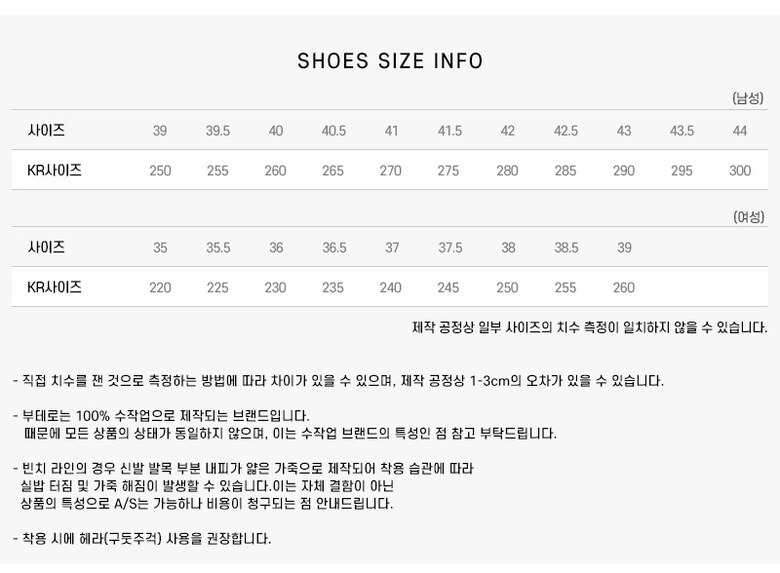| 1. 제품 소재 (운동화인 경우에는 겉감, 안감을 구분하여 표시) | 상세페이지 참조 |