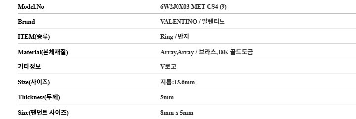 [명품] 발렌티노 6W2J0X03 MET CS4 J0X03 MET CS4 가라바니 V로고 반지
