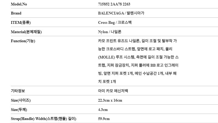 #리본즈코리아 #7158522AA782263 #[명품] #발렌시아가 #715852 #2AA78 #2263 #아미 #카모 #메신저백 #크로스백 #남성 #가방/핸드백 #크로스/메신저백