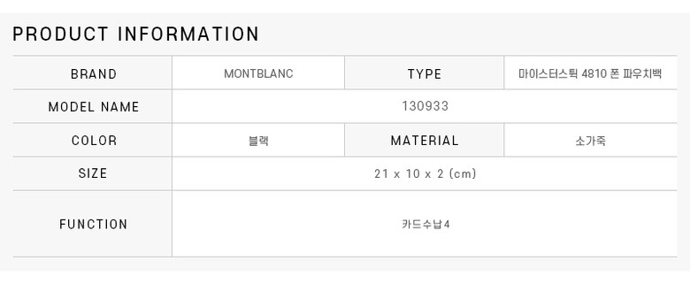[명품] 몽블랑 130933 마이스터스튁 4810 폰 파우치백
