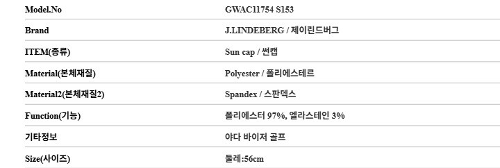 [명품] 제이린드버그 GWAC11754 S153 야다 바이저 골프 썬캡