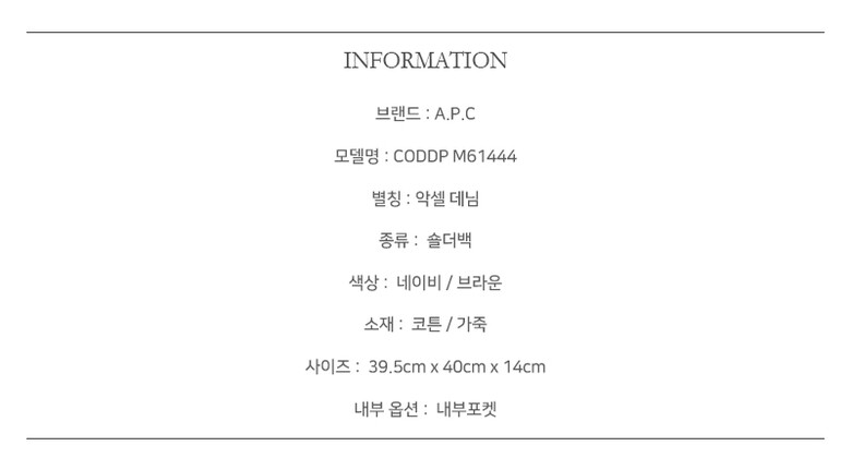 [명품] 아페쎄 COD M61444 IAK DARK NAVY AXELLE 악셀 데님 토트백