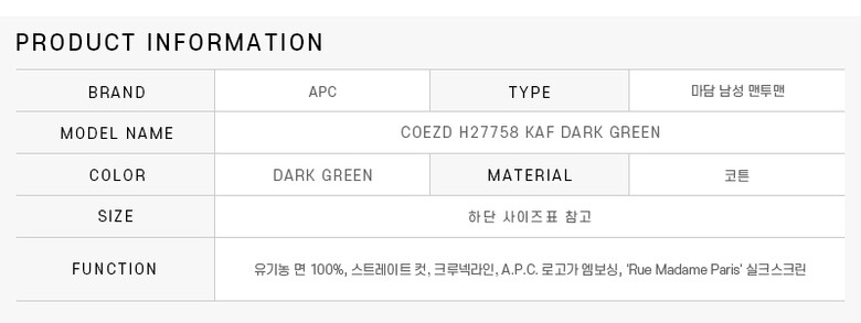 - #리본즈코리아 #COEZDH27758KAFDARKGREEN #[명품] #아페쎄 #COEZD #H27758 #KAF #DARK #GREEN #MADAME #마담 #남성 #맨투맨 #의류 #상의