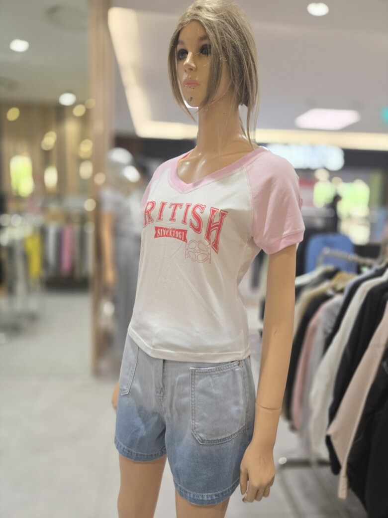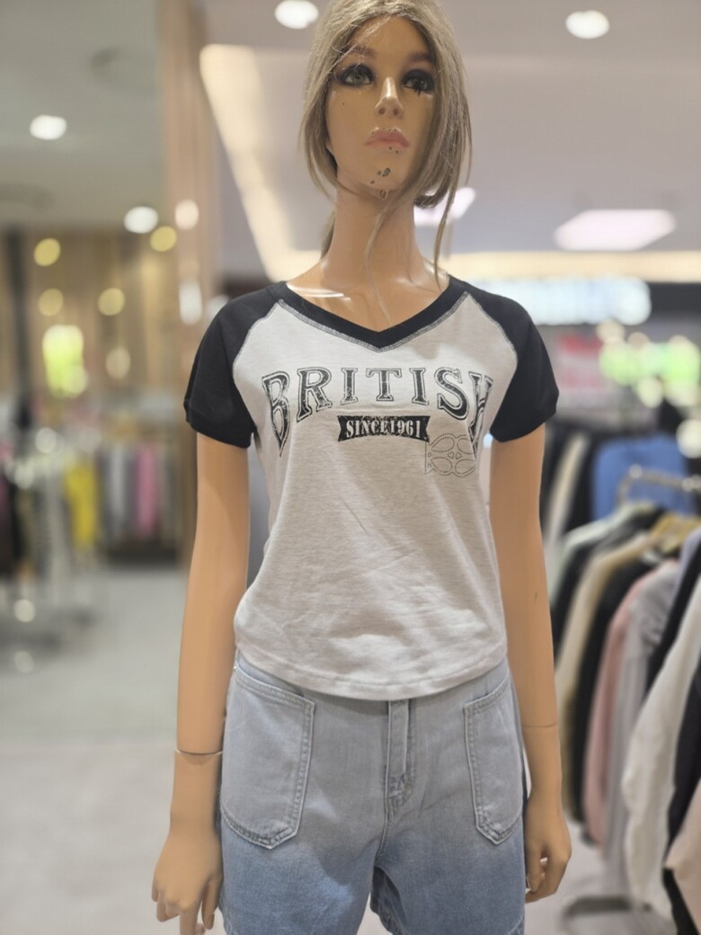 배색 브이넥 나그랑 슬림티셔츠 ER2OTH-62