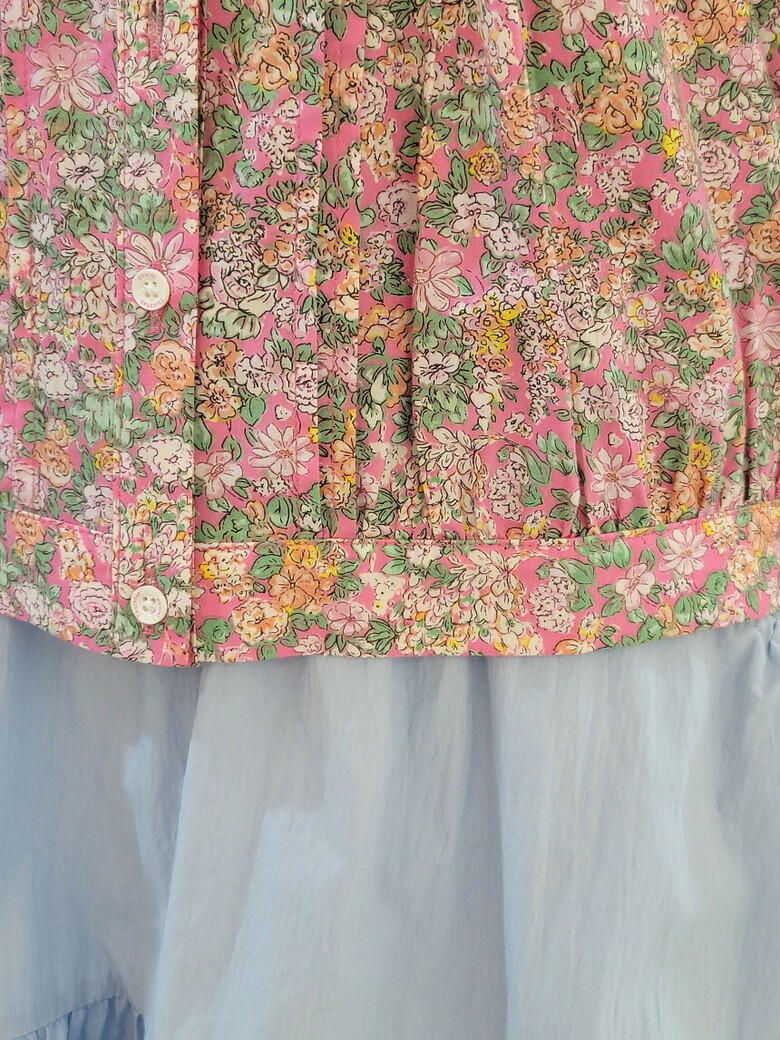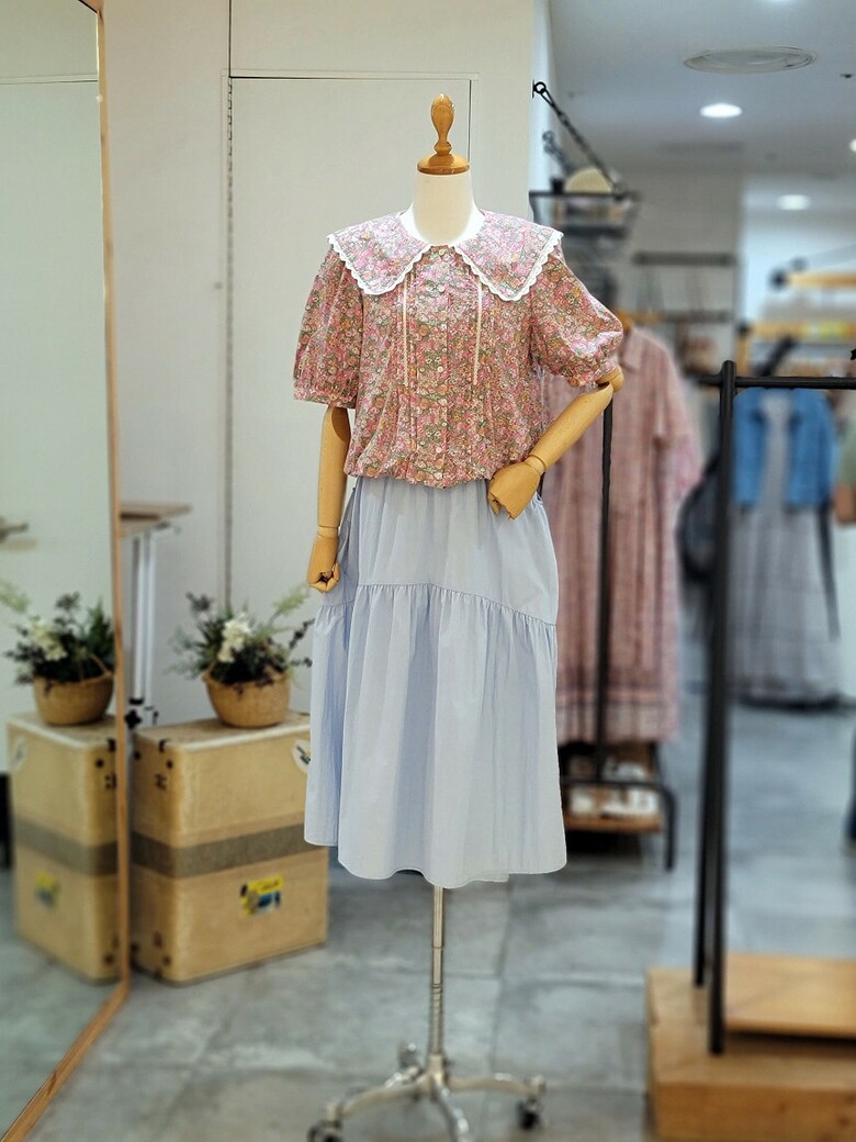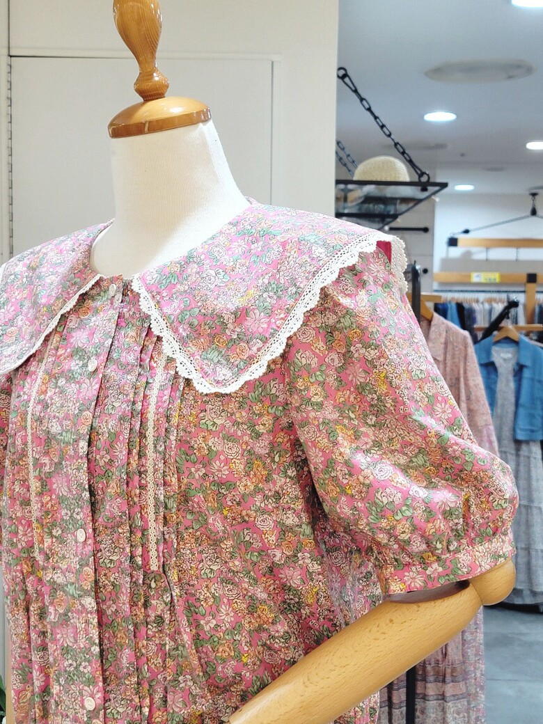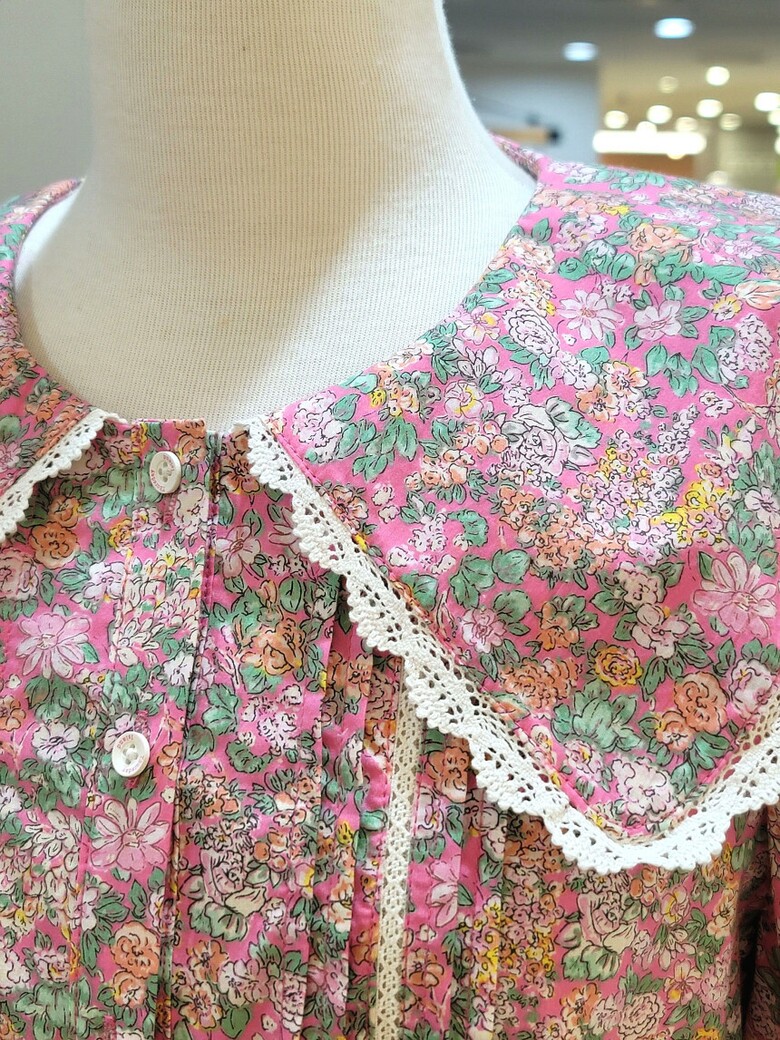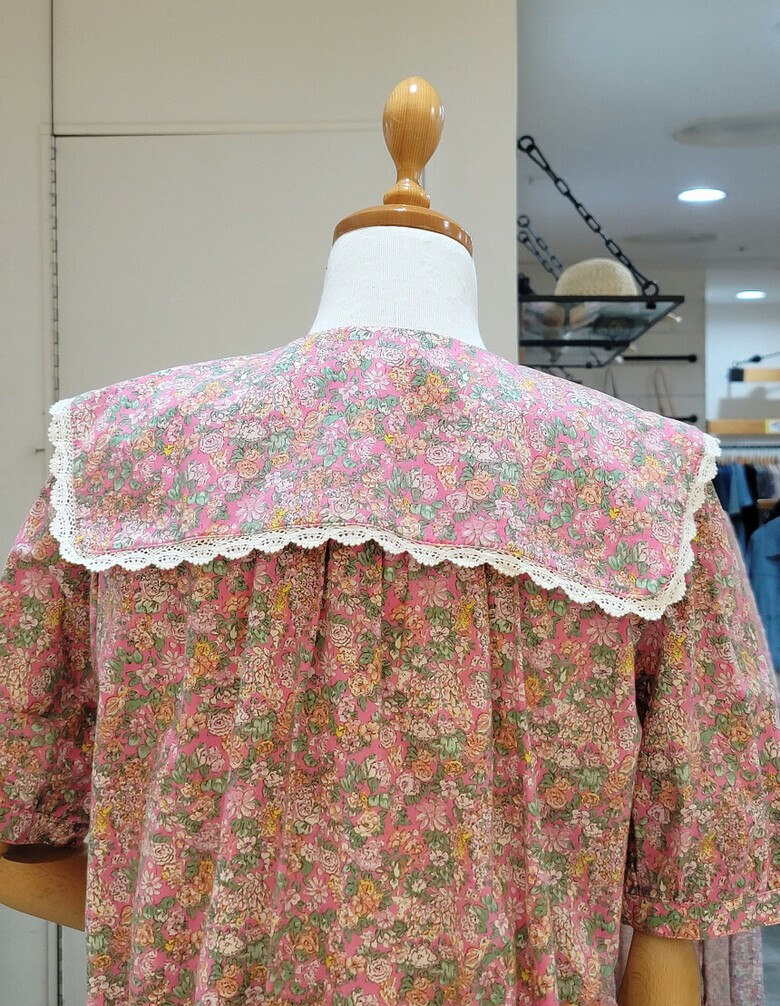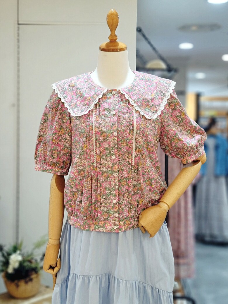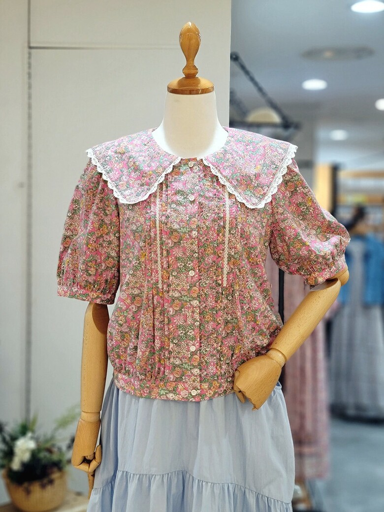 플라워 패턴에 핀턱과 레이스 테이프가 패치된