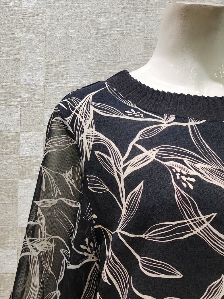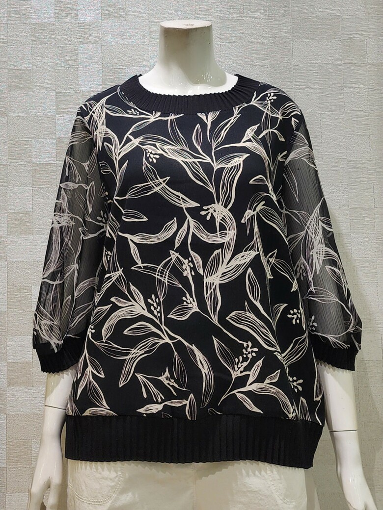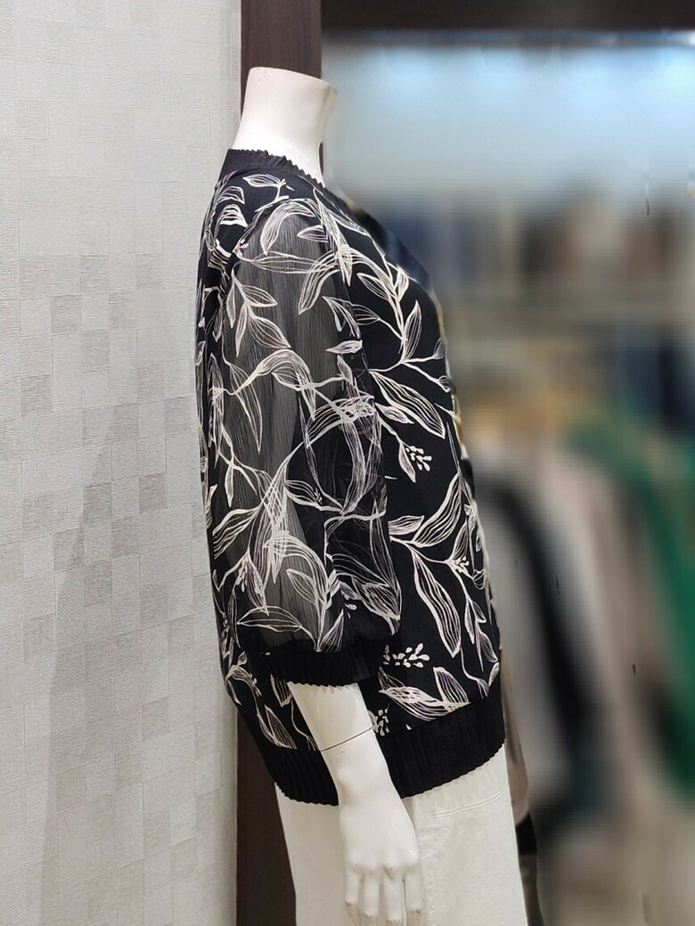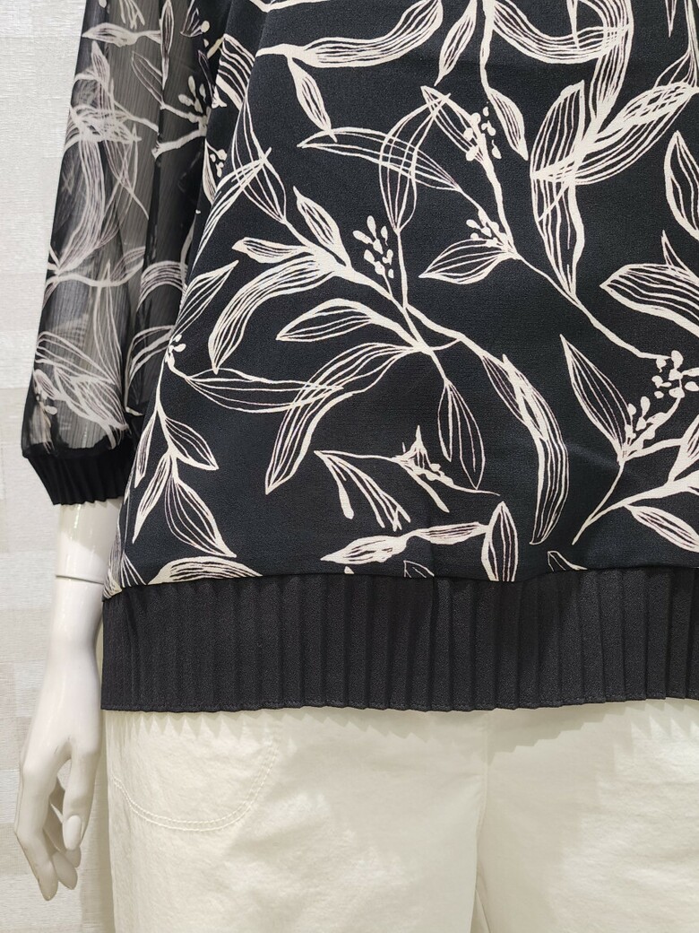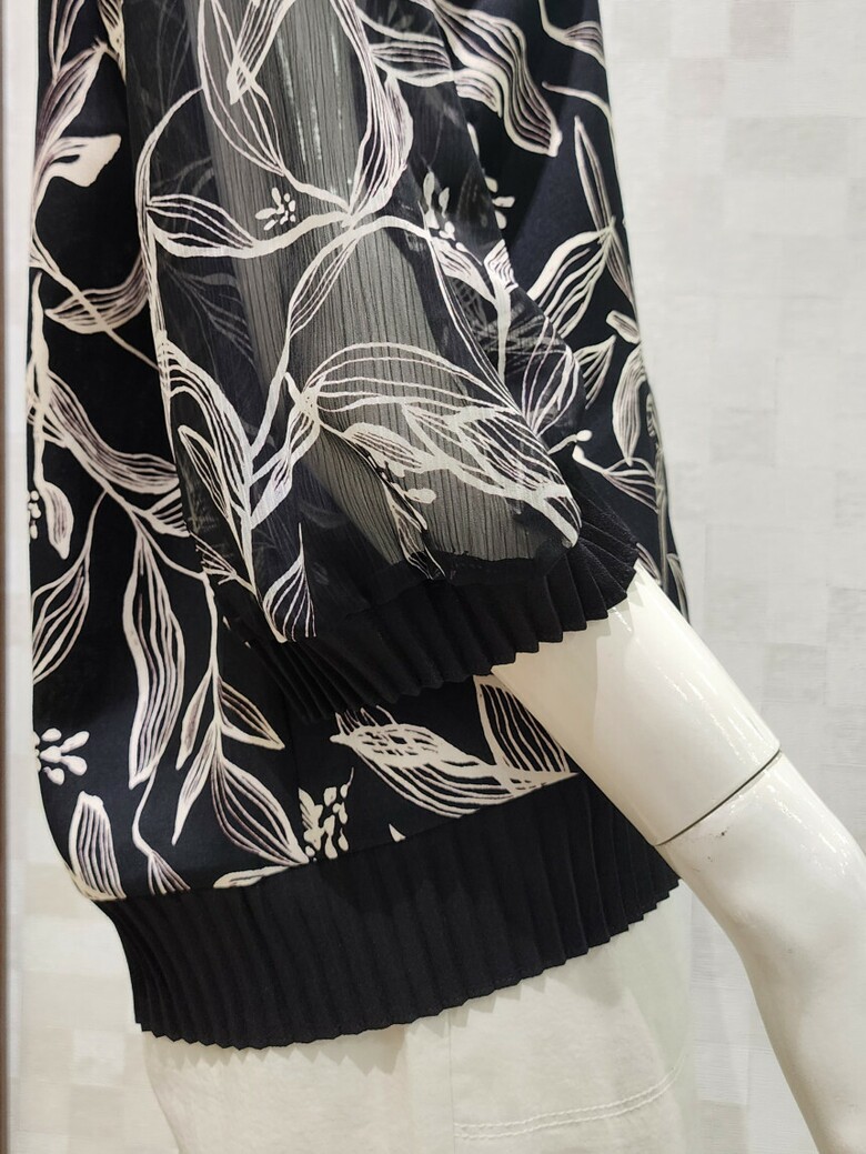 [벨라디터치] V9F2BL35 플리츠 배색 시폰 블라우스