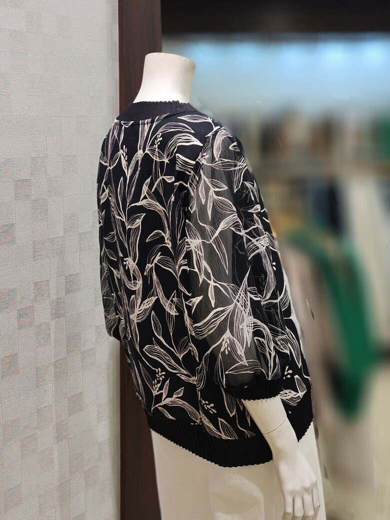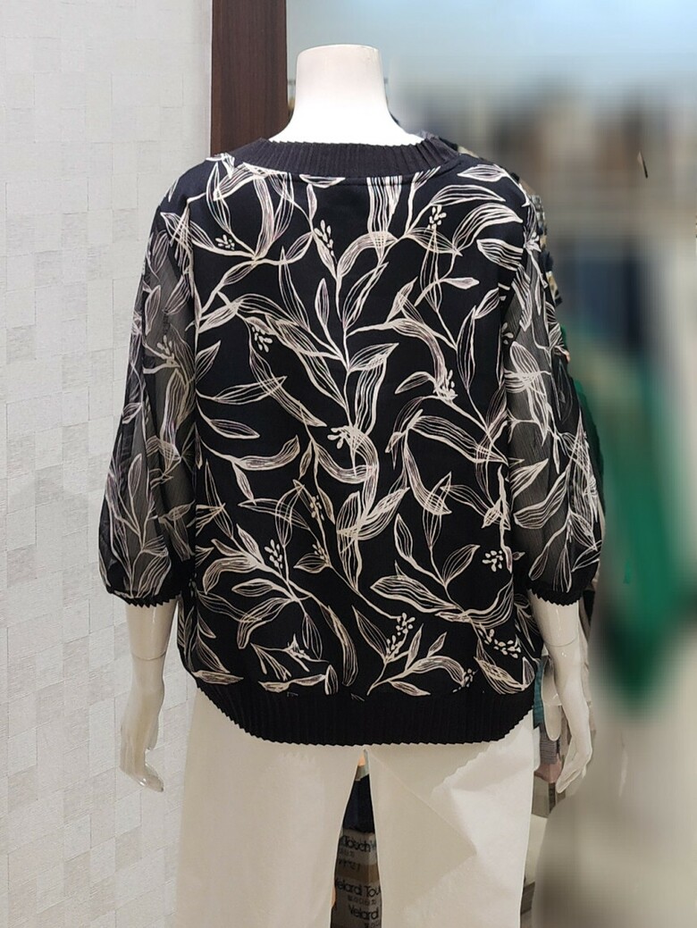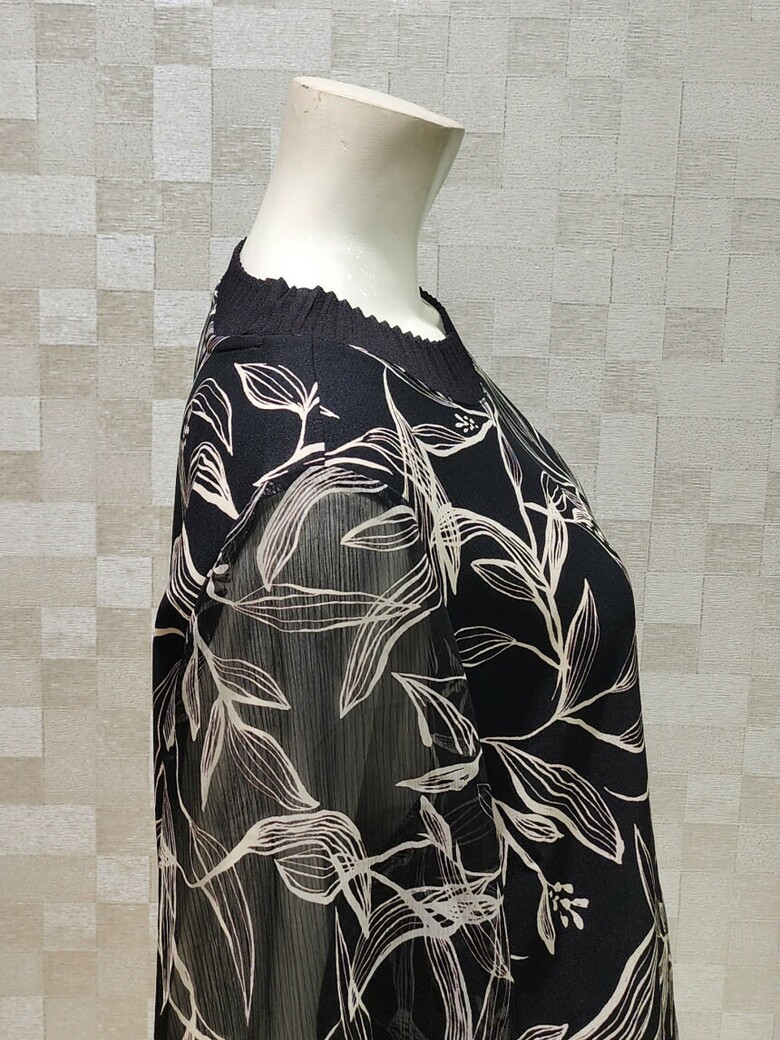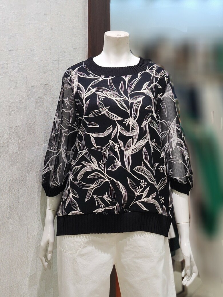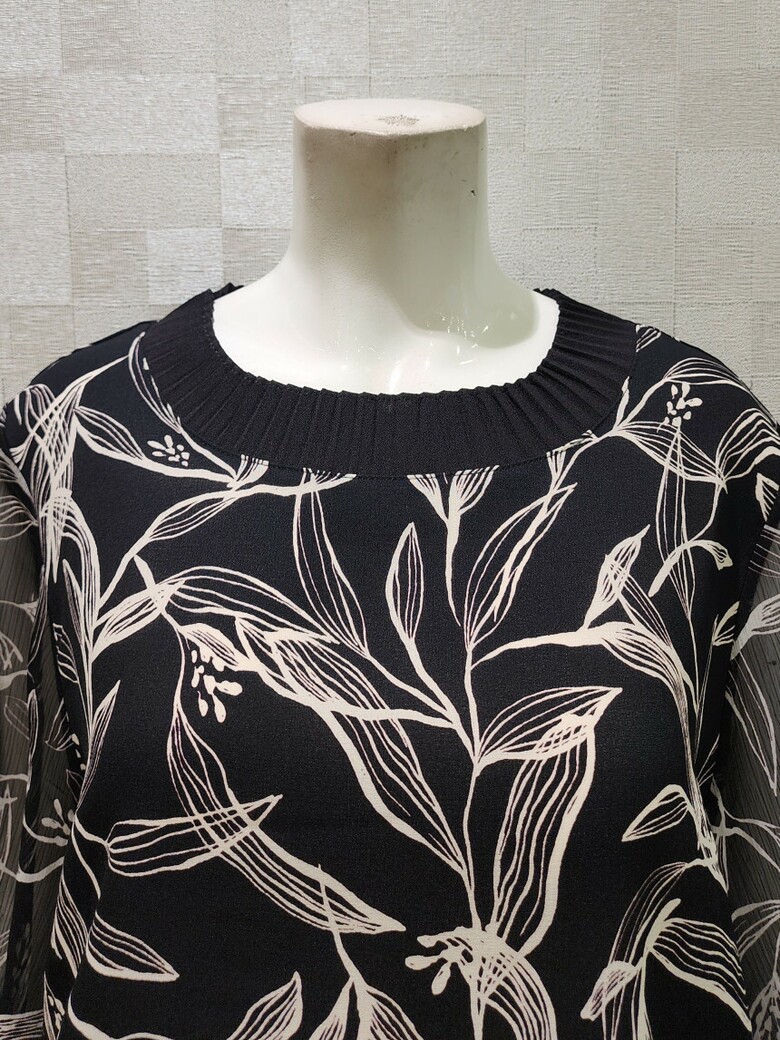 [벨라디터치] V9F2BL35 플리츠 배색 시폰 블라우스