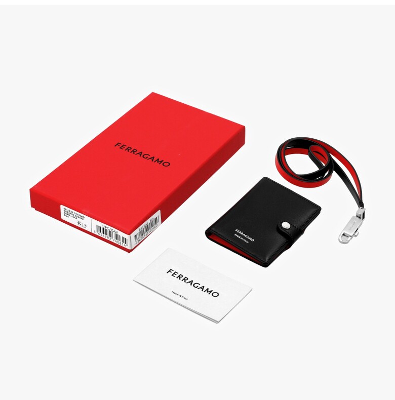 [명품] 페라가모 66 1420 0775569 661420 775569 로고 바이컬러 넥 스트랩 카드지갑