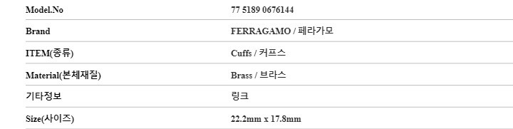 [명품] 페라가모 77 5189 0676144 775189 676144 간치니 링크 커프스