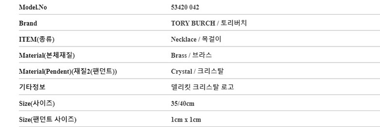 [명품] 토리버치 53420 042 밀러 델리킷 크리스탈 로고 목걸이