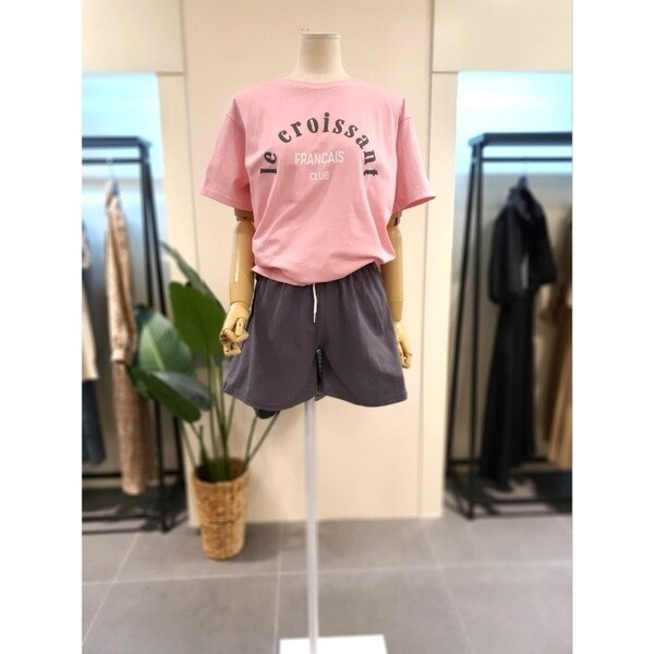 귀여운 크루아상 프린팅으로 포인트가 들어간 티셔츠로 캐주얼합니다.