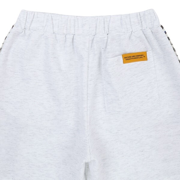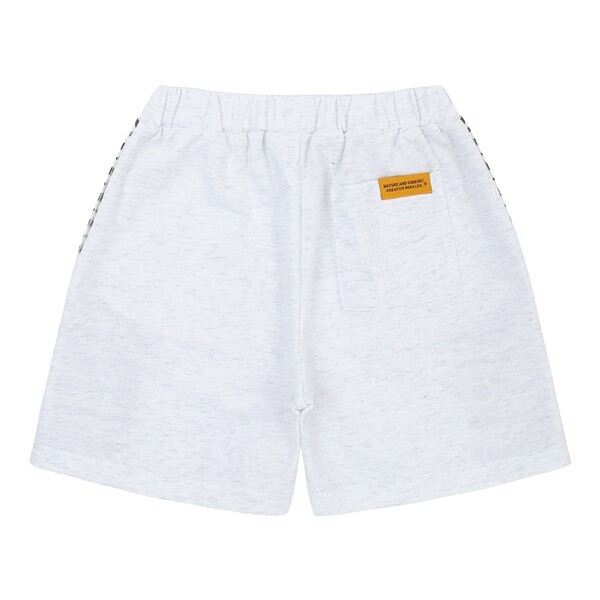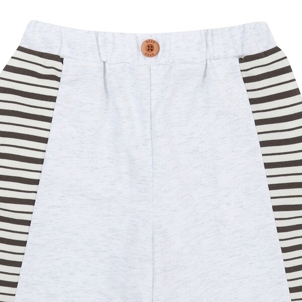 세련된 멜란지 그레이 컬러의 스트라이프 배색 반바지입니다.