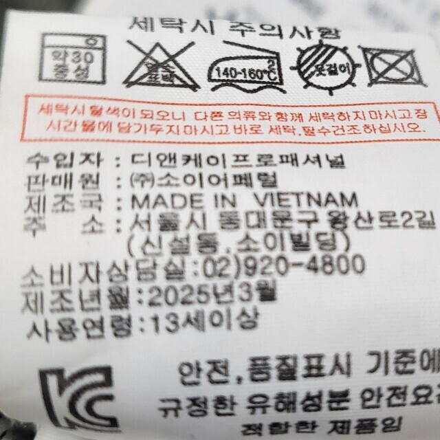 | 1. 제품 소재 (섬유의 조성 또는 혼용률을 백분율로 표시, 기능성인 경우 성적서 또는 허가서) | 상품상세참조 |
