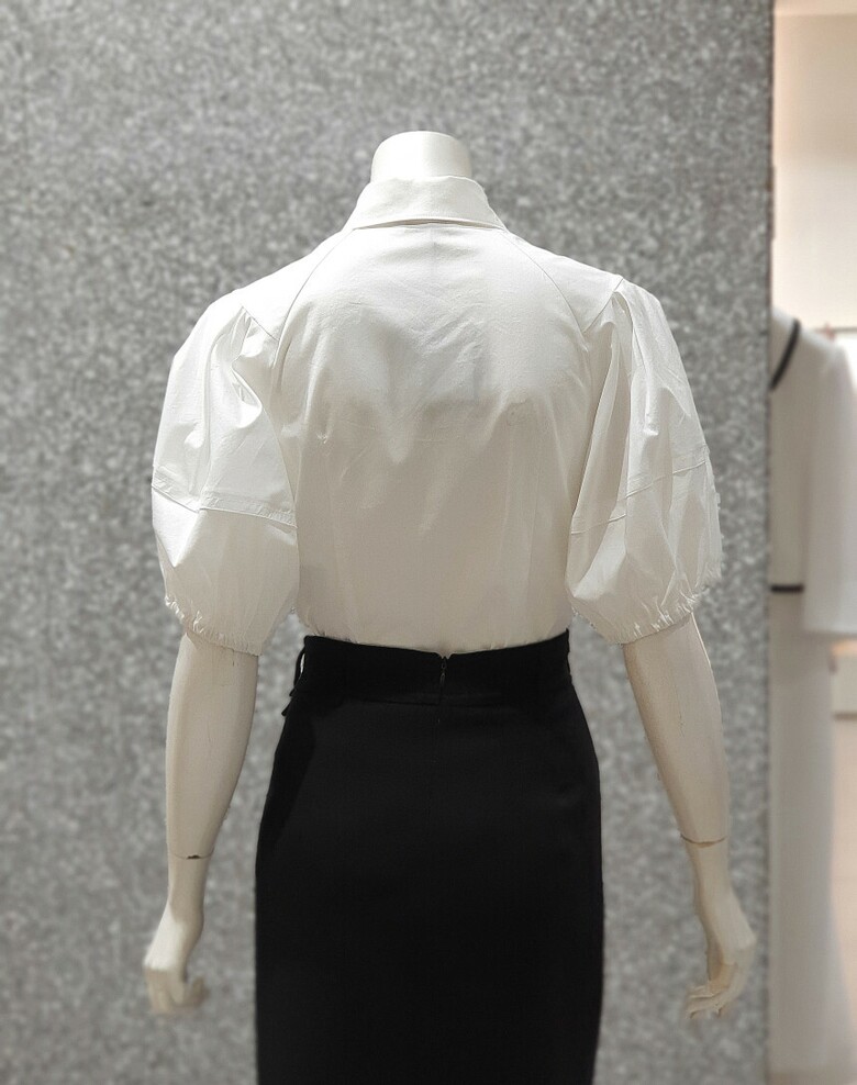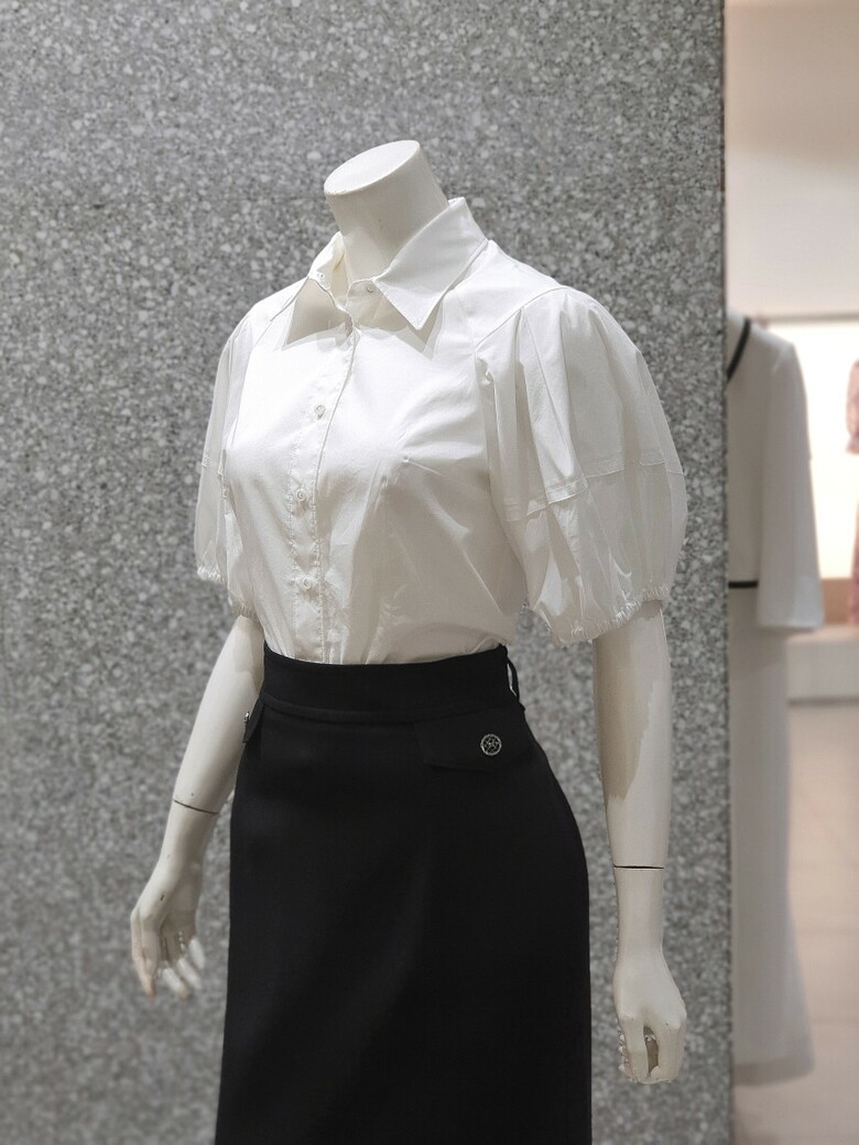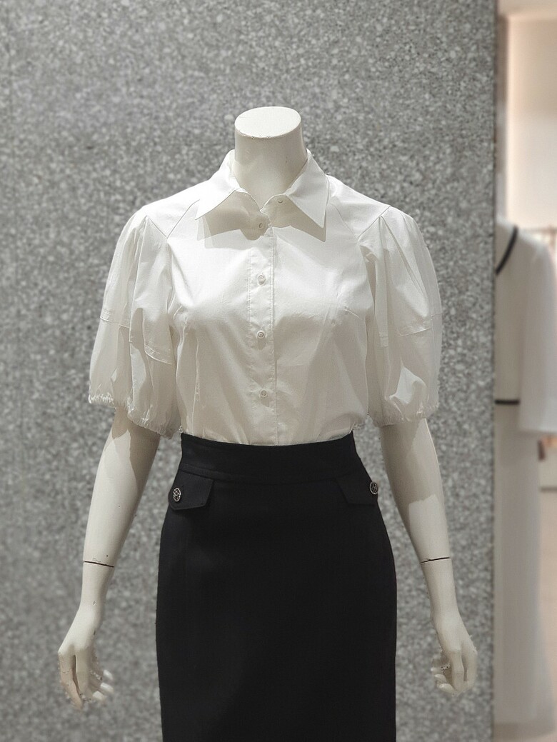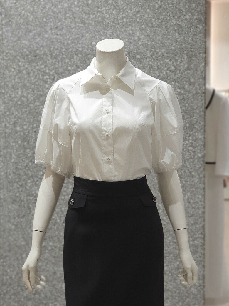 퍼프 슬리브를 연출한 셔츠블라우스입니다.