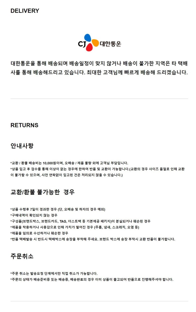 반품 유의사항