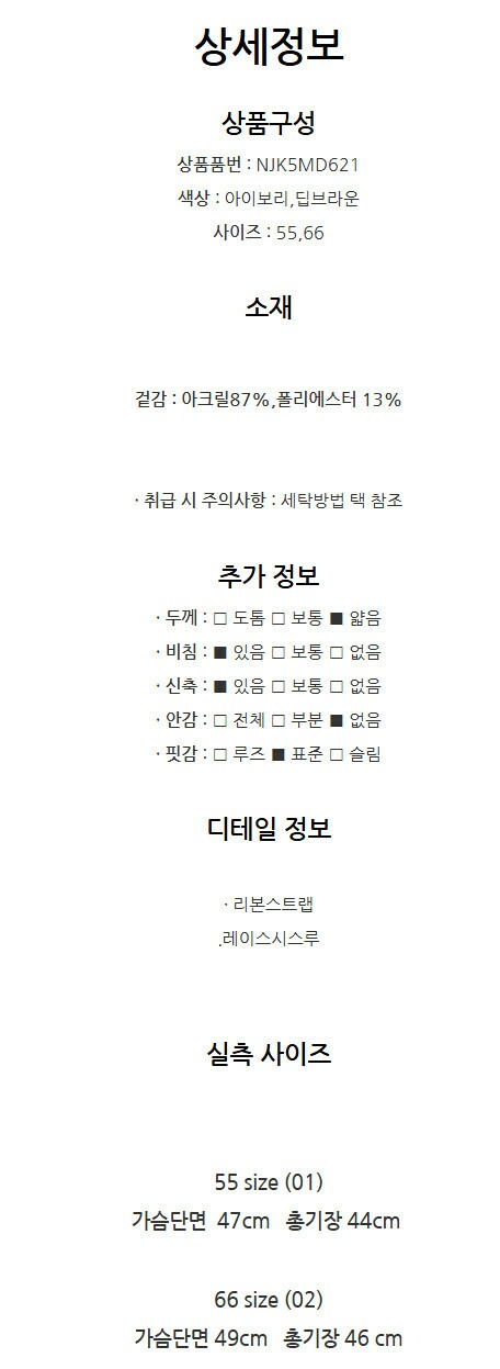 [ON&ON] 리본스트랩 레이스시스루 가디건 NJK5MD621