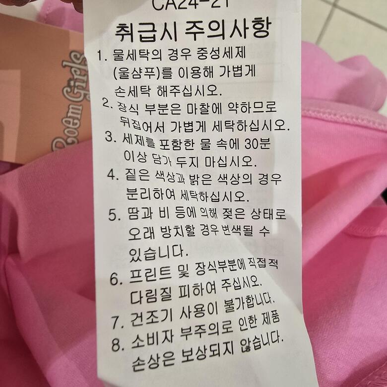 | 6. 세탁방법 및 취급시 주의사항 | 상품상세참조 |
