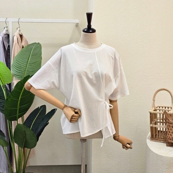 FM5E3TS32591_언발란스 스트링 끈 반팔 티셔츠