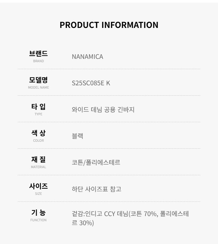 나나미카 바지 S25SC085E K 와이드 데님 남성바지 여성바지 당일발송