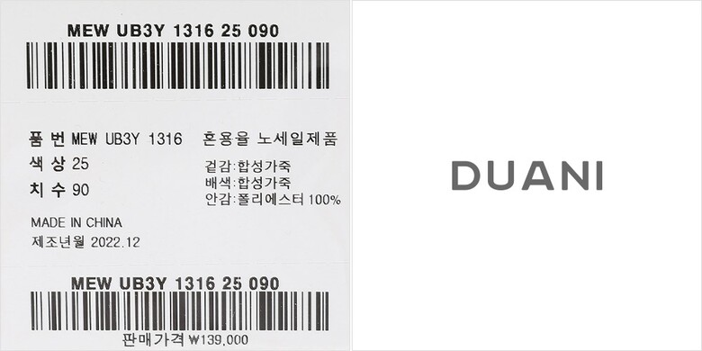 | 2. 소재 | 겉감:합성가죽 안감:폴리에스터100% 배색:합성가죽 |