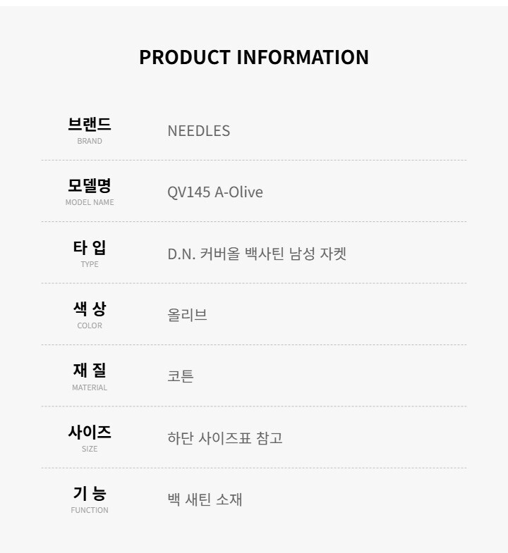 | 1. 제품 소재 (섬유의 조성 또는 혼용률을 백분율로 표시, 기능성인 경우 성적서 또는 허가서) | 상세페이지 참조 |