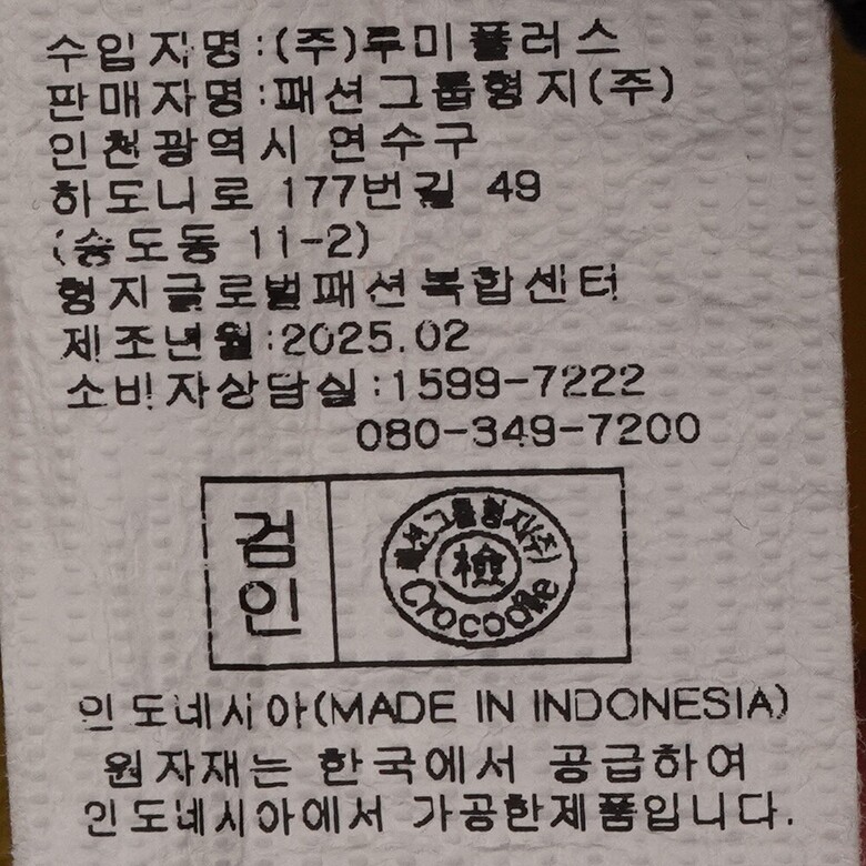 | 1. 제품 소재 (섬유의 조성 또는 혼용률을 백분율로 표시, 기능성인 경우 성적서 또는 허가서) | 상품상세참조 |