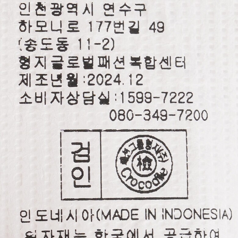 | 1. 제품 소재 (섬유의 조성 또는 혼용률을 백분율로 표시, 기능성인 경우 성적서 또는 허가서) | 상품상세참조 |