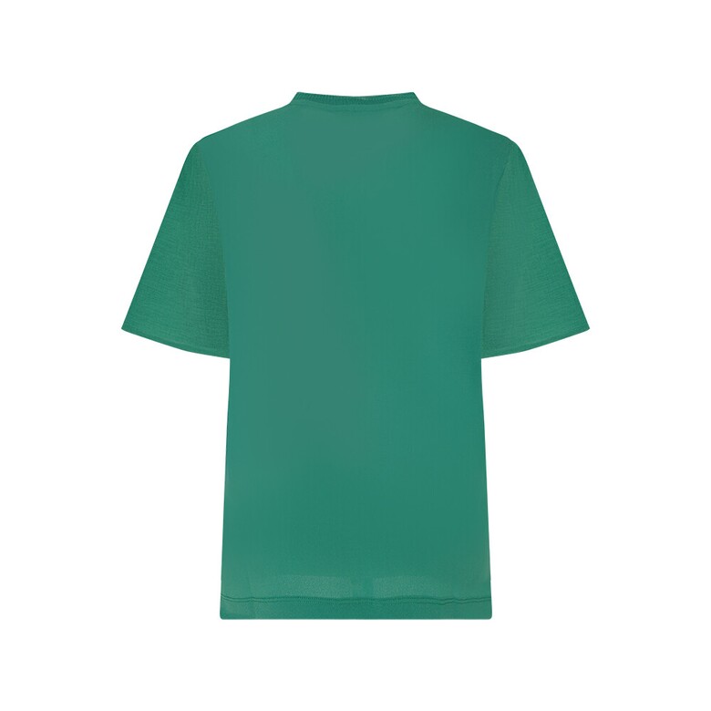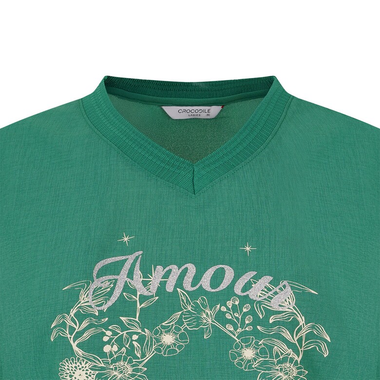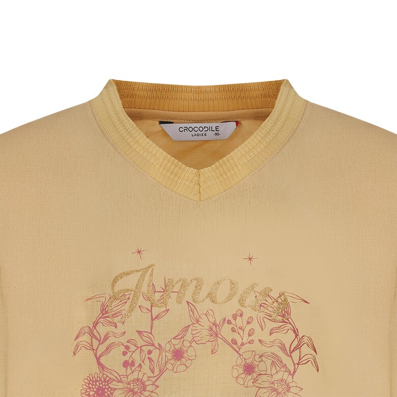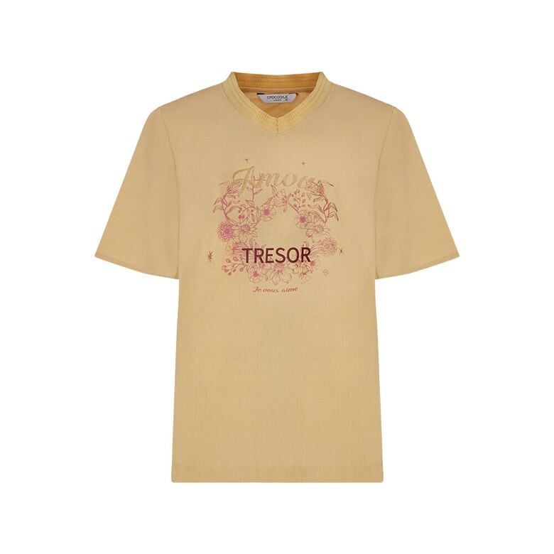 크로커다일레이디 브이넥 우븐 배색 티셔츠 CLEMTS117