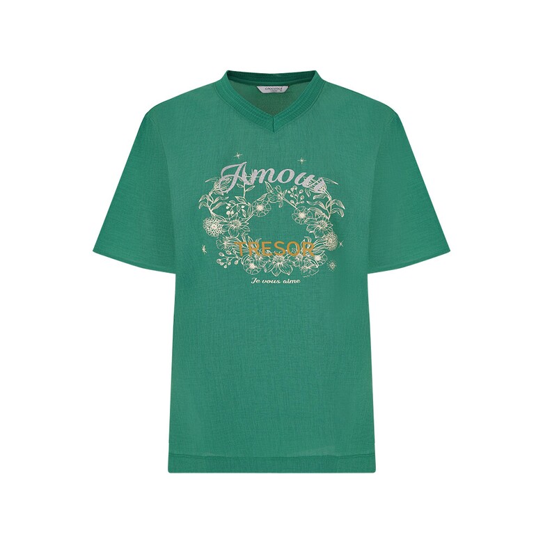 편안한 착용감과 여유러운 핏을 지닌 아이템으로 간결한 브이넥과 앞판에 경쾌한 프린트가 여름철에 맞게 시원해 보이며 감각적인 연출이 가능하다.