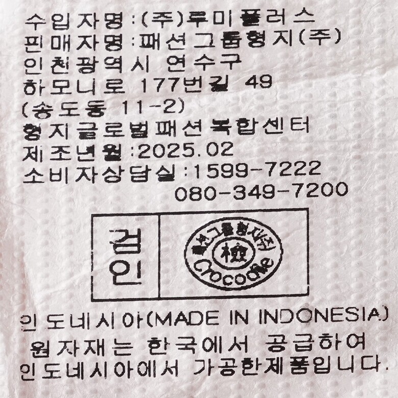 | 1. 제품 소재 (섬유의 조성 또는 혼용률을 백분율로 표시, 기능성인 경우 성적서 또는 허가서) | 상품상세참조 |