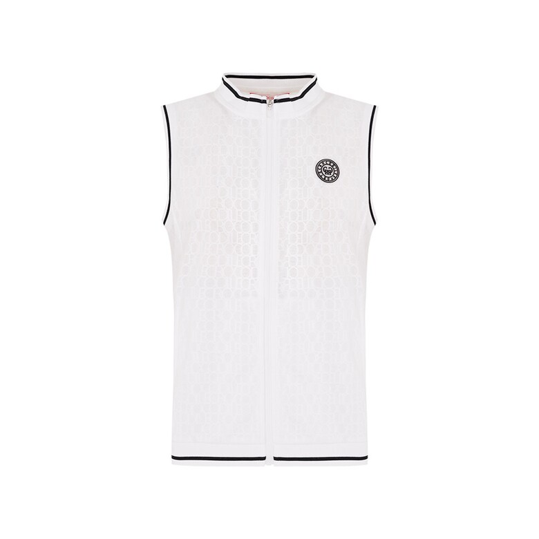 (G라인)폴리스판 소재로 텐션감이 좋고 솔리드 로고 자가드가 고급스러우며 시보리 배색이 세련된 스포티한 풀오픈 베스트