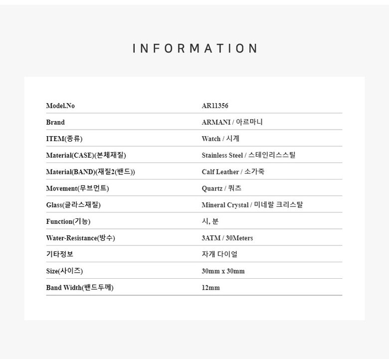아르마니 AR11356 로사 자개 여성 가죽 시계