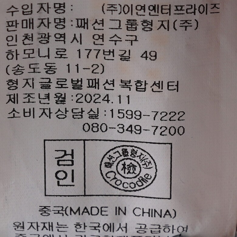 | 6. 세탁방법 및 취급시 주의사항 | 상품상세참조 |