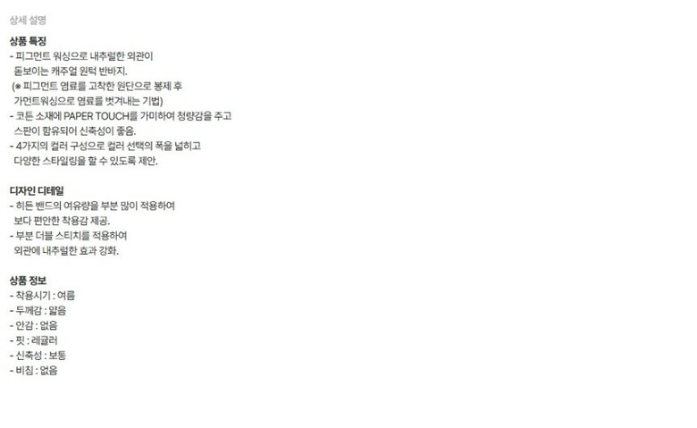 | 6. 세탁방법 및 취급시 주의사항 | 상품상세참조 |