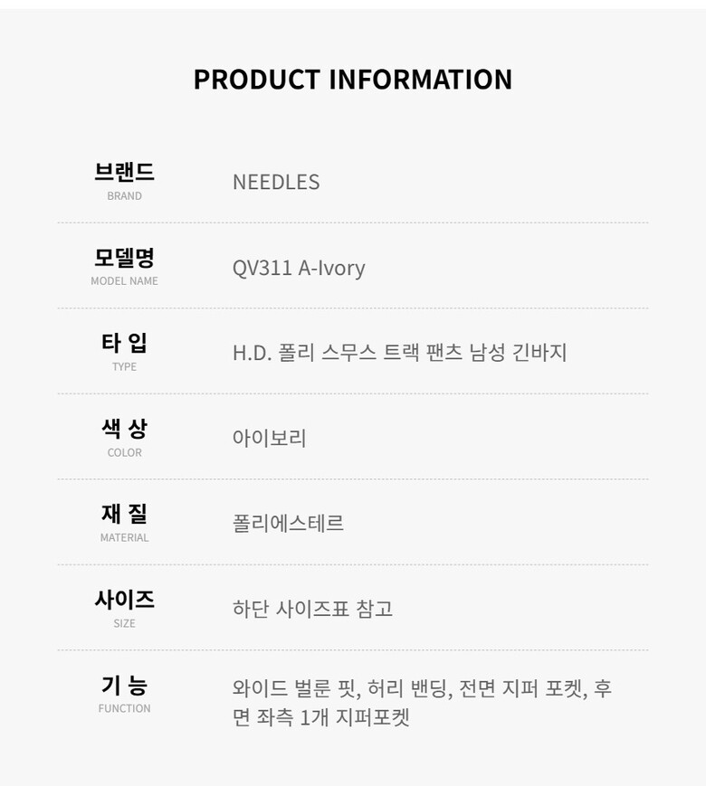 니들스 바지 QV311 A-Ivory 폴리 스무스 트랙팬츠 남성바지 당일발송