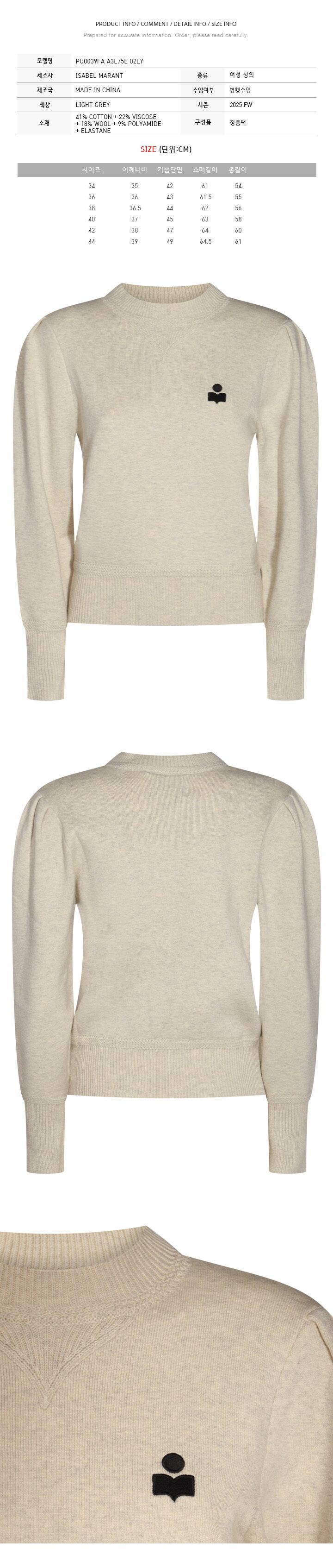 이자벨마랑 25FW KELAYA 로고 자수 니트 라이트그레이 PU0039FA A3L75E 02LY