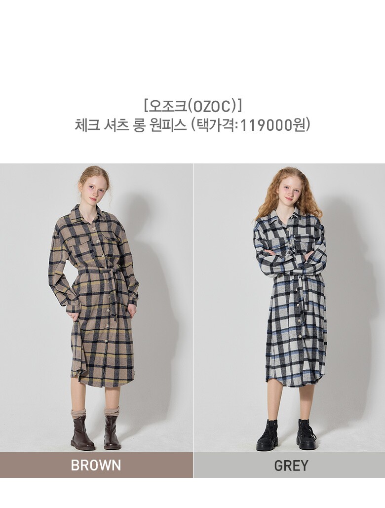 [오조크(OZOC)] 체크 셔츠 롱 원피스 (택가격: 119000원)