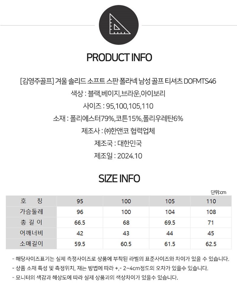 [김영주골프] 겨울 솔리드 소프트 스판 폴라넥 남성 골프 티셔츠 DOFMTS46