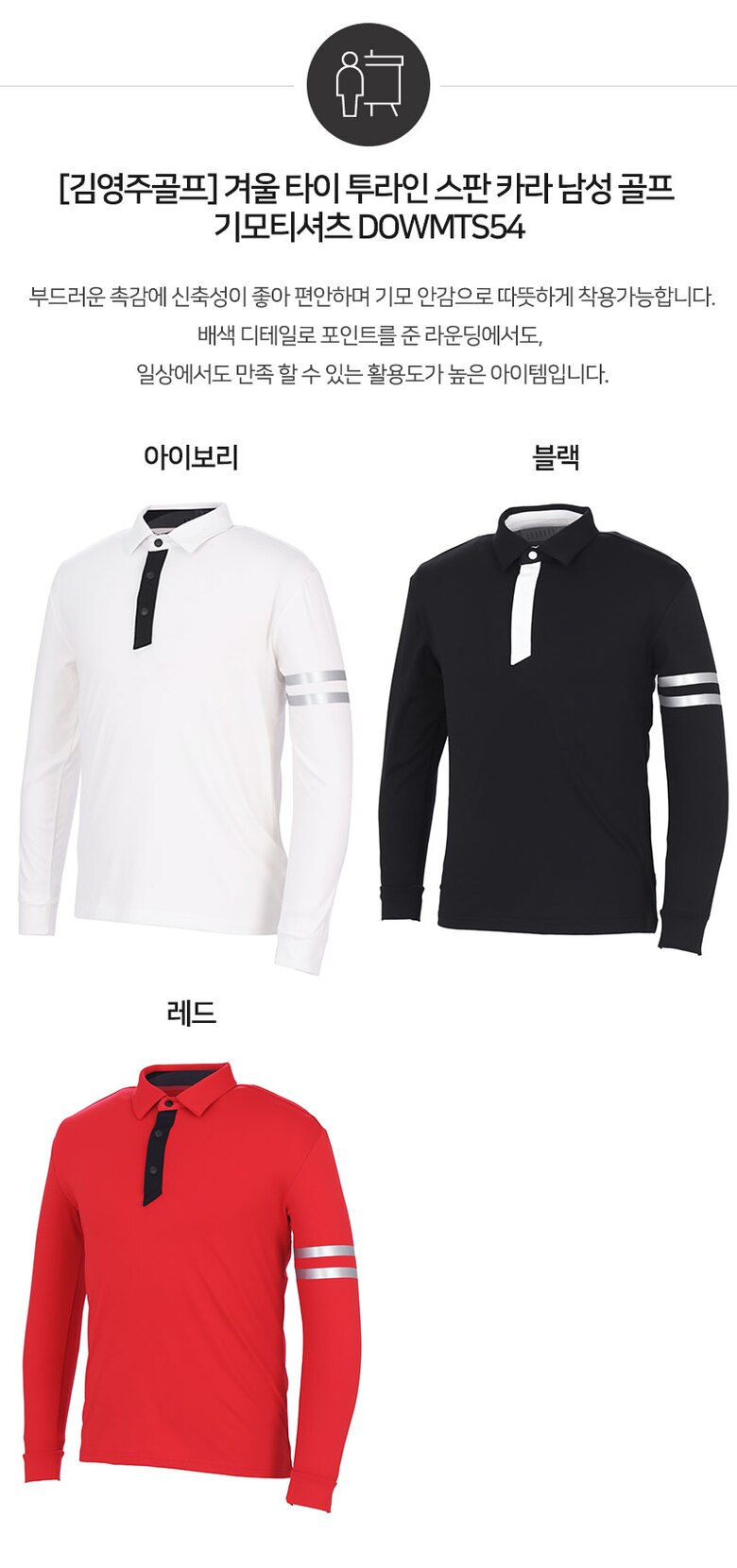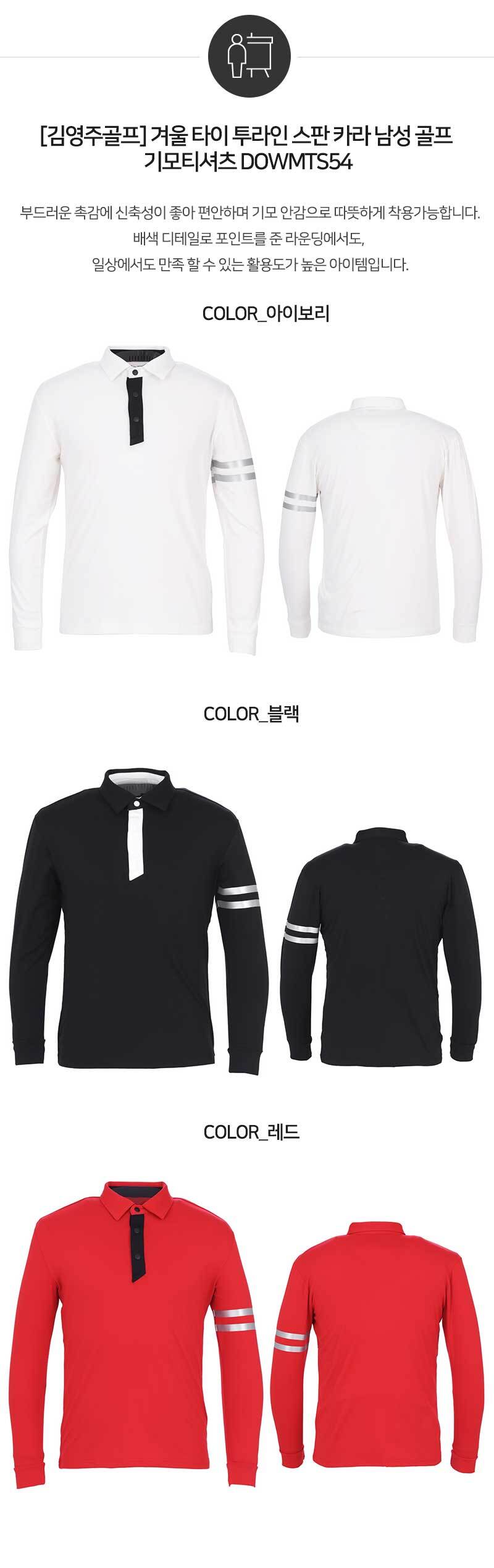 [김영주골프] 겨울 타이 투라인 스판 카라 남성 골프 기모티셔츠 DOWMTS54