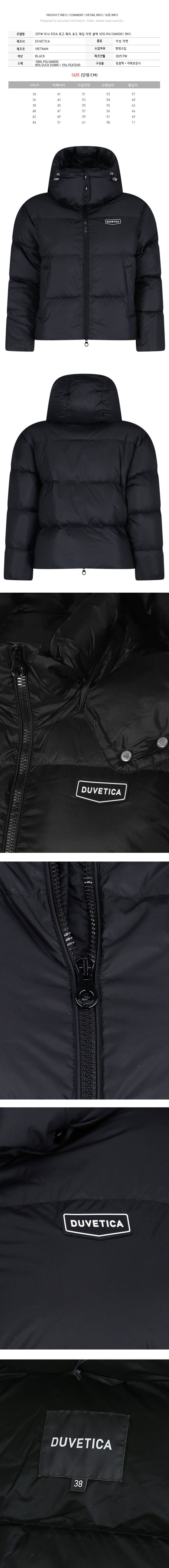 듀베티카 25FW RISA 로고 패치 후드 패딩 자켓 블랙 VDDJ96136K0001 BKS