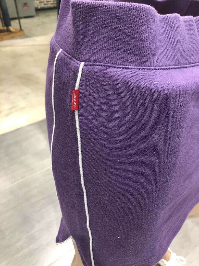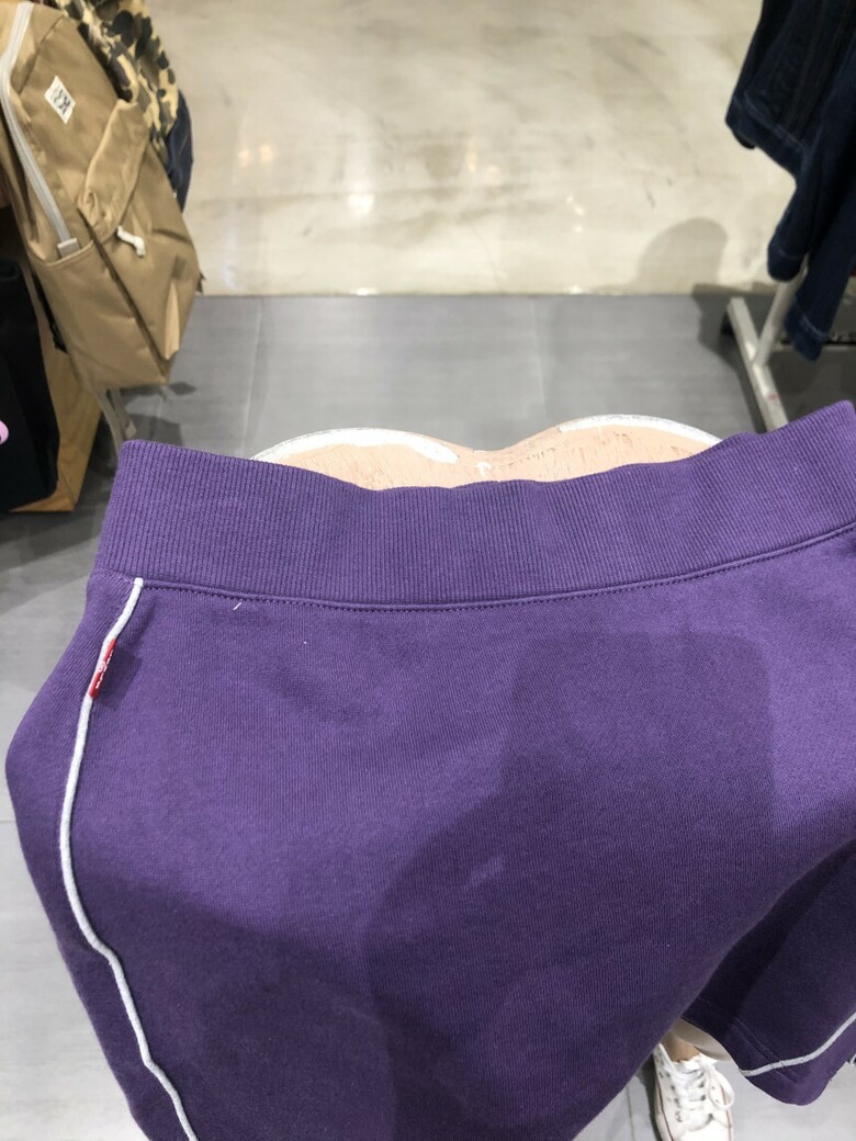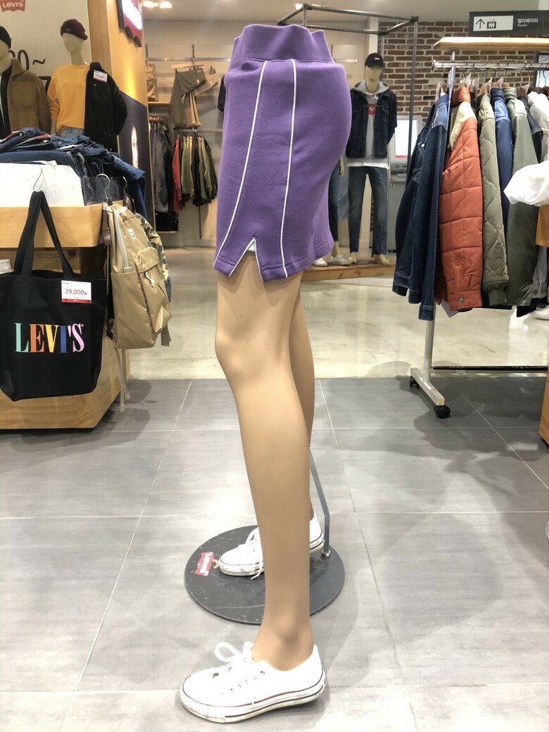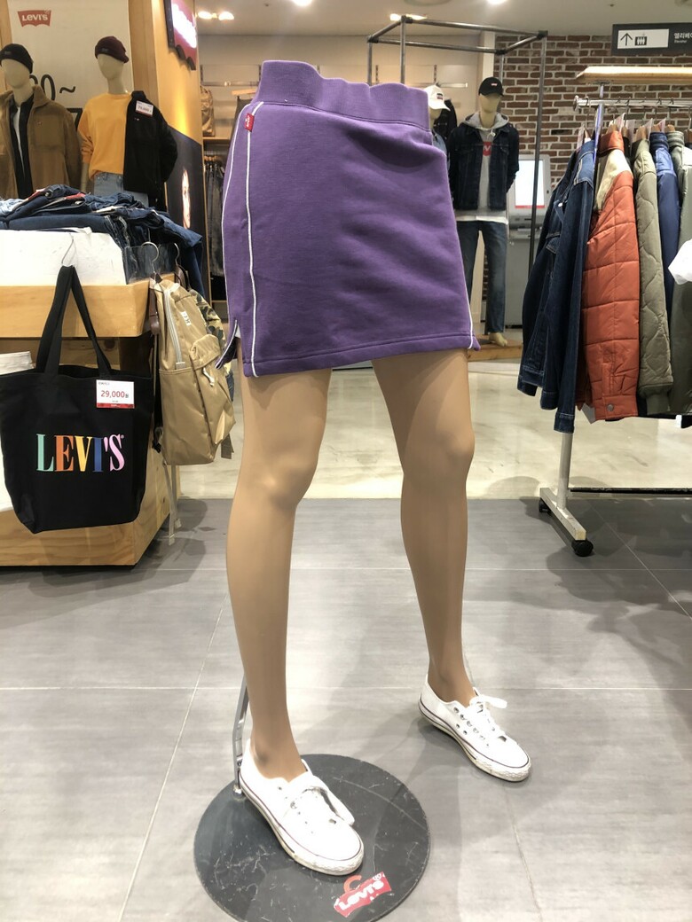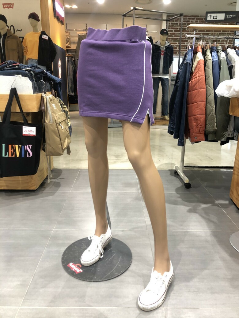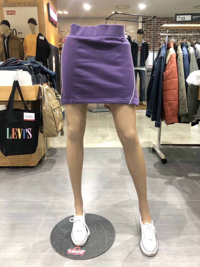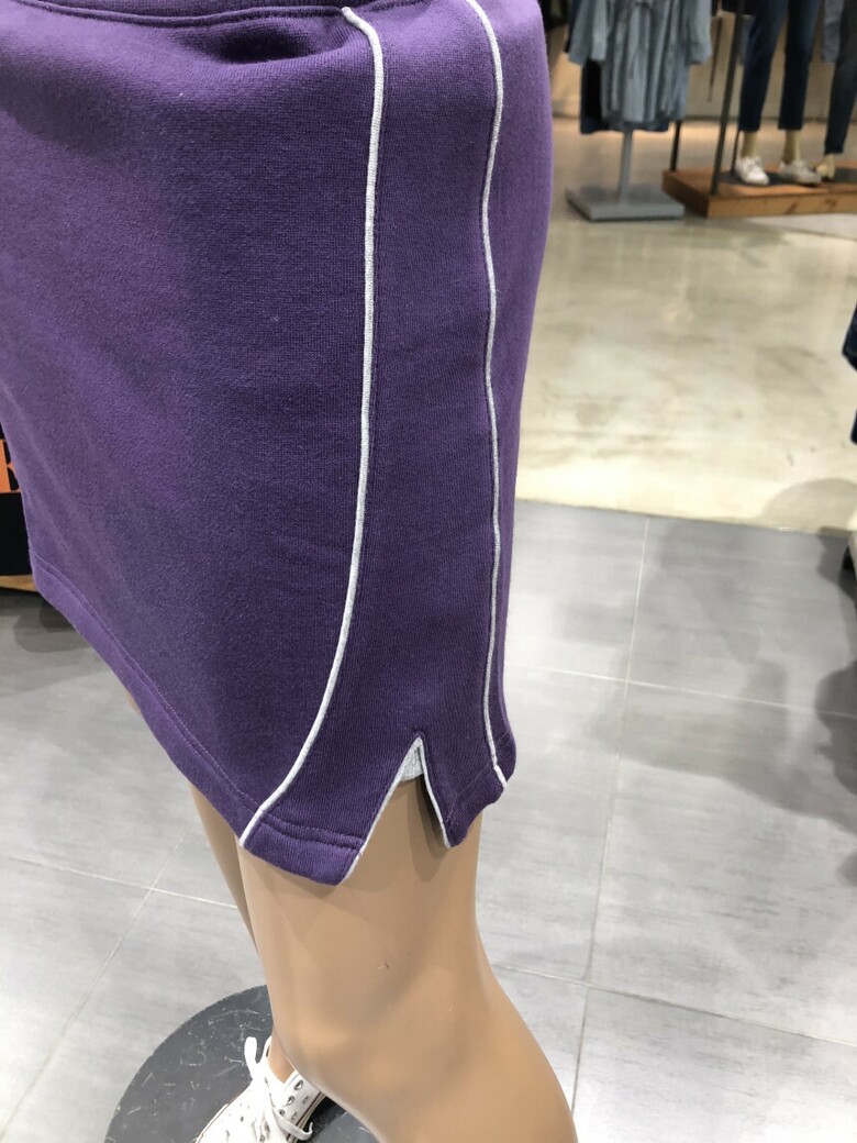 퍼플컬러에 그레이컬러의 포인트가 있는 여성 스커트입니다.