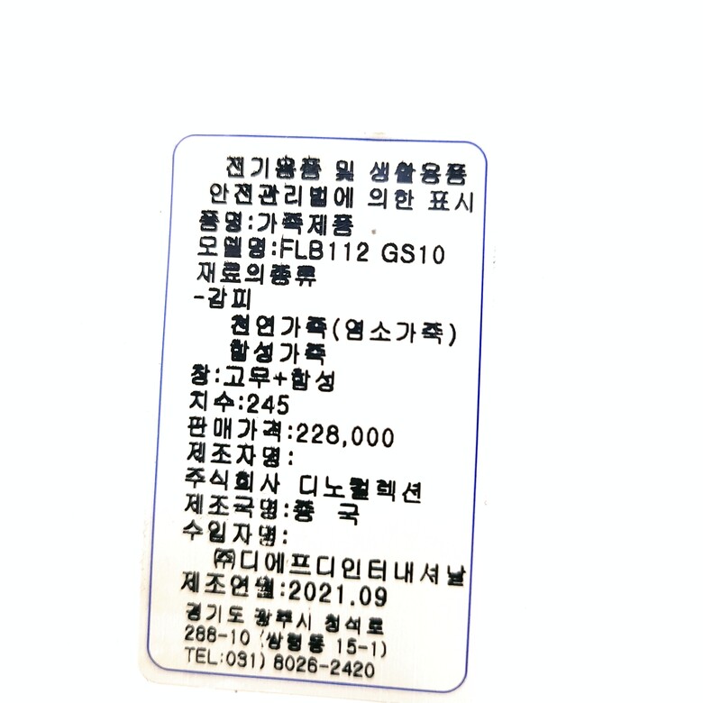 | 1. 제품 소재 (운동화인 경우에는 겉감, 안감을 구분하여 표시) | 염소가죽 |