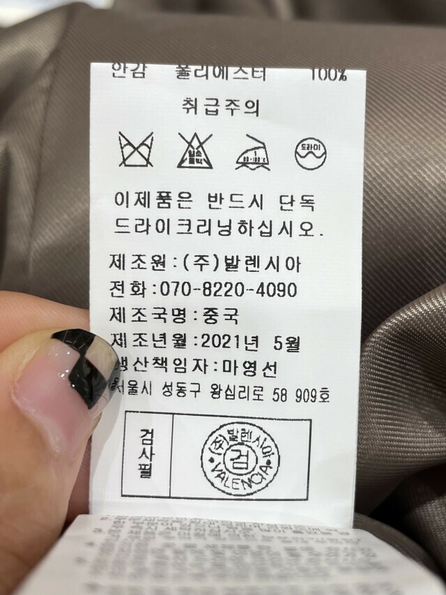 | 1. 제품 소재 (섬유의 조성 또는 혼용률을 백분율로 표시, 기능성인 경우 성적서 또는 허가서) | 겉감:폴리에스테르 100% / 폴리에스테르 100% |