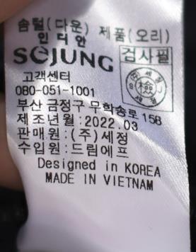 소재:폴리에스터 100%/충전재: 오리솜털 80%|*|오리깃털 20%