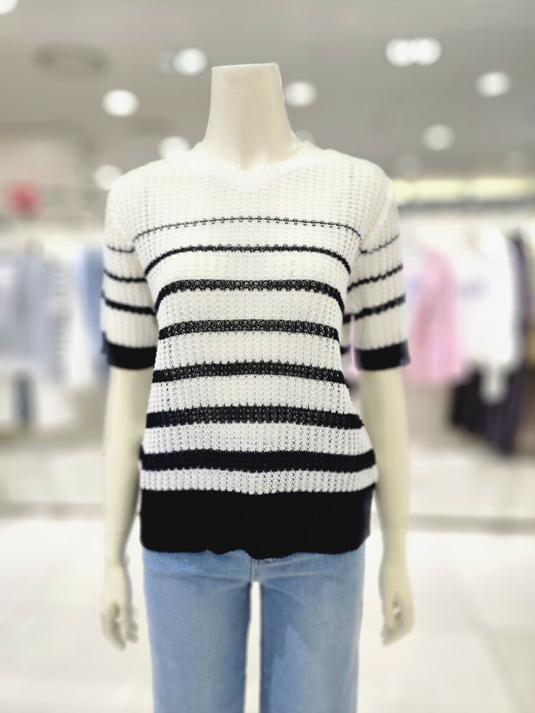 더틸버리 변형스트라이프반팔니트TP5M1PO14W