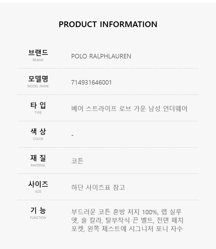 폴로랄프로렌 POLO RALPHLAUREN 714931646001 베어 스트라이프 로브 가운 남성 언더웨어